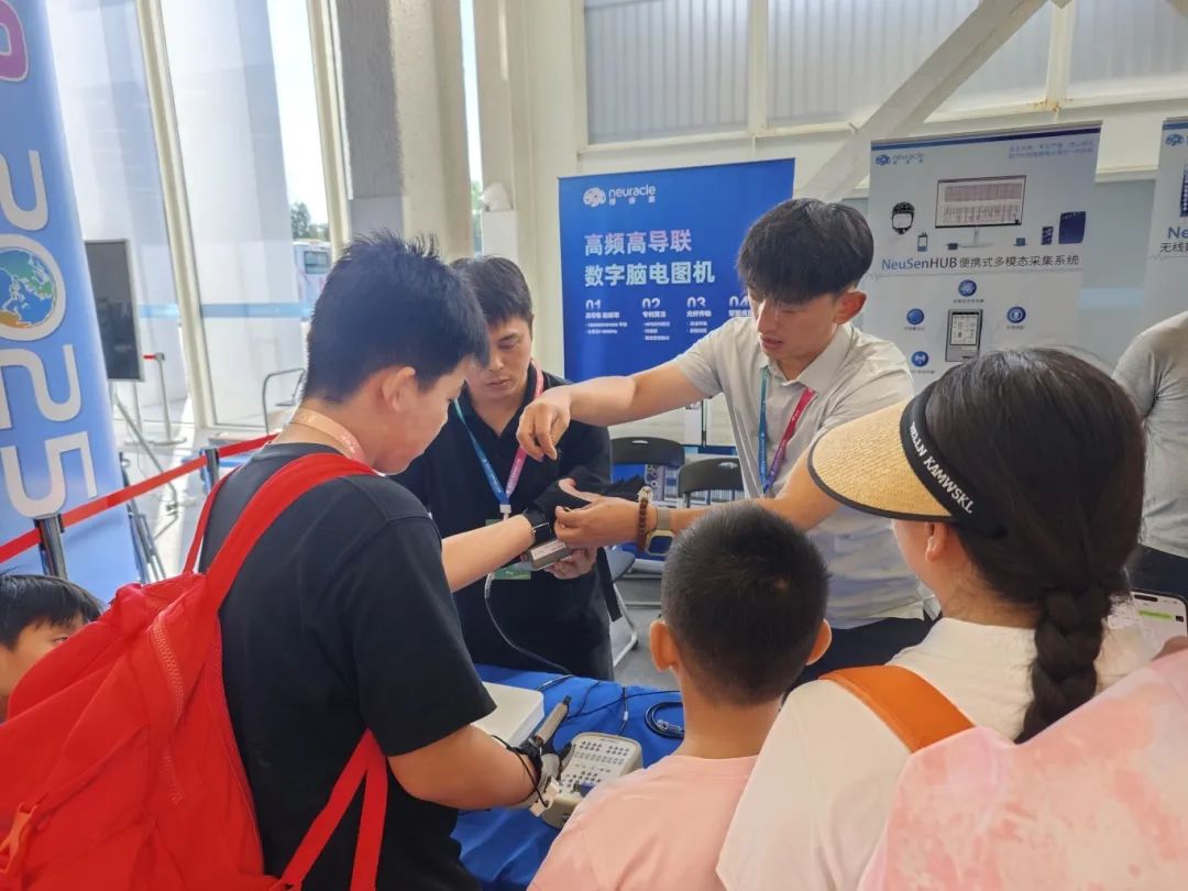 博睿康在现场集中展示了NeuSen HUB便携式多模态采集系统、NeuSen W无线数字脑电采集系统、经颅深部电刺激闭环系统、CAPTIV多模态人因交互系统、临床脑电系统和主动康复系统,适用于从实验室研究到临床治疗的多种应用场景。央视新闻等权威媒体现场采访报道,引发广泛关注。